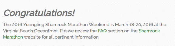 Today, I signed up for the Yuengling Shamrock Marathon in Virginia Beach, which will be held on March 20, 2016. My first half marathon race was at the same running festival in 2011, and I haven’t been back for a race there since.