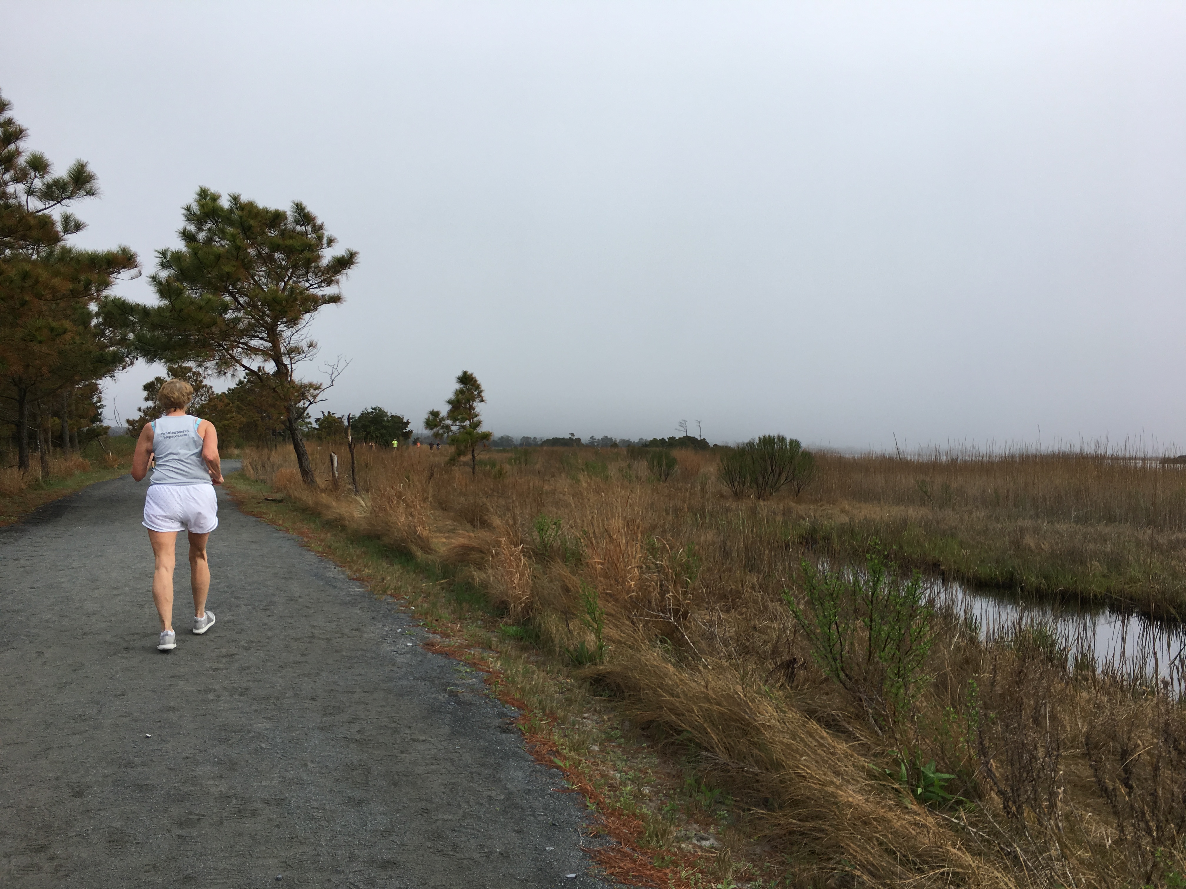 The Coastal Delaware course is beautiful, taking runners up and back on the Gordon’s Pond Trail. I love this trail and enjoyed running on it, although it was foggy, which obscured some of the views.