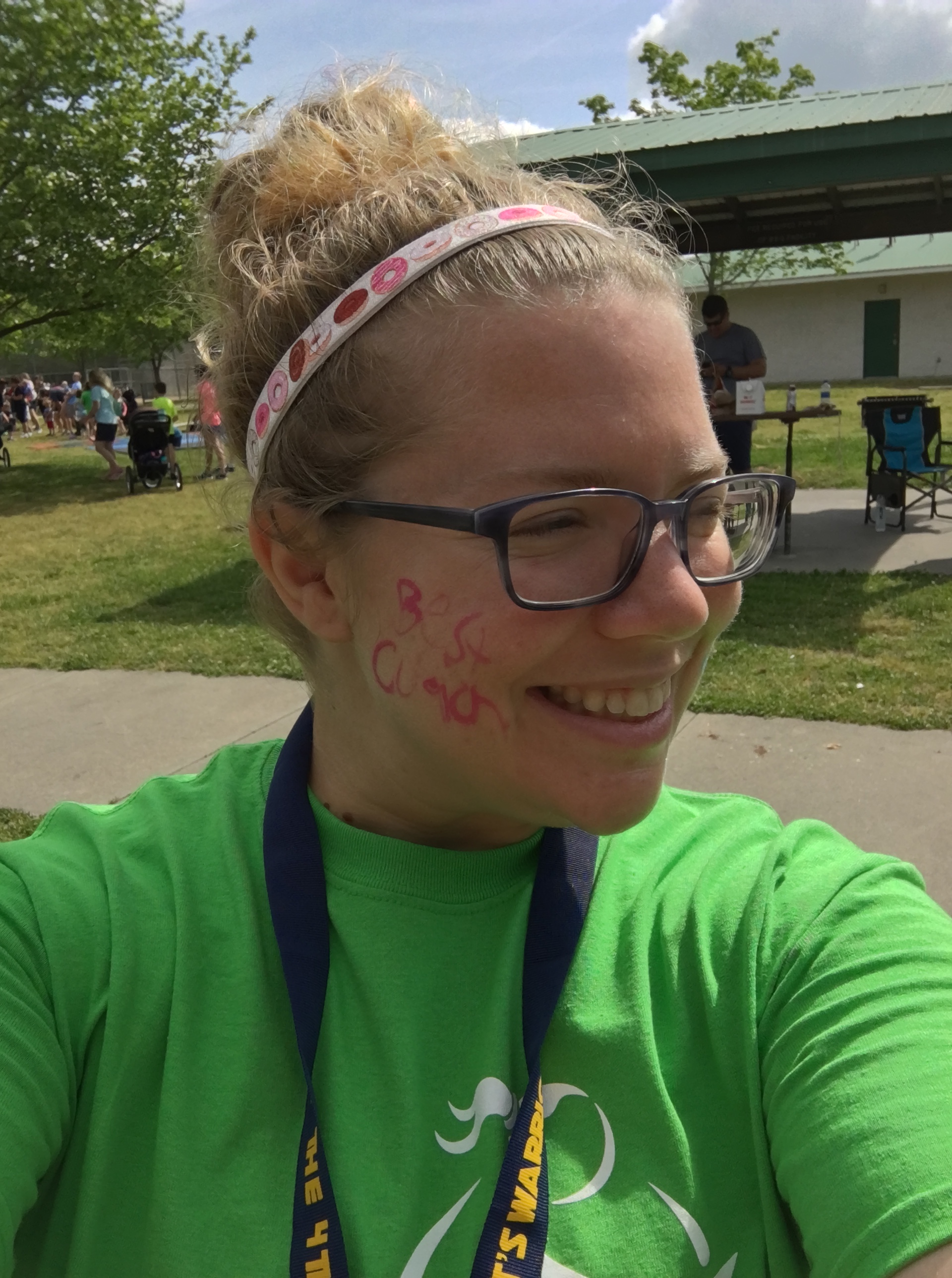 Then, after the race, I let one of the girls paint my face with a surprise message. She wrote “best coach,” which I thought was so nice! Then I let her cousin (I think she was her cousin) draw a rainbow on my cheek and a butterfly on my arm.