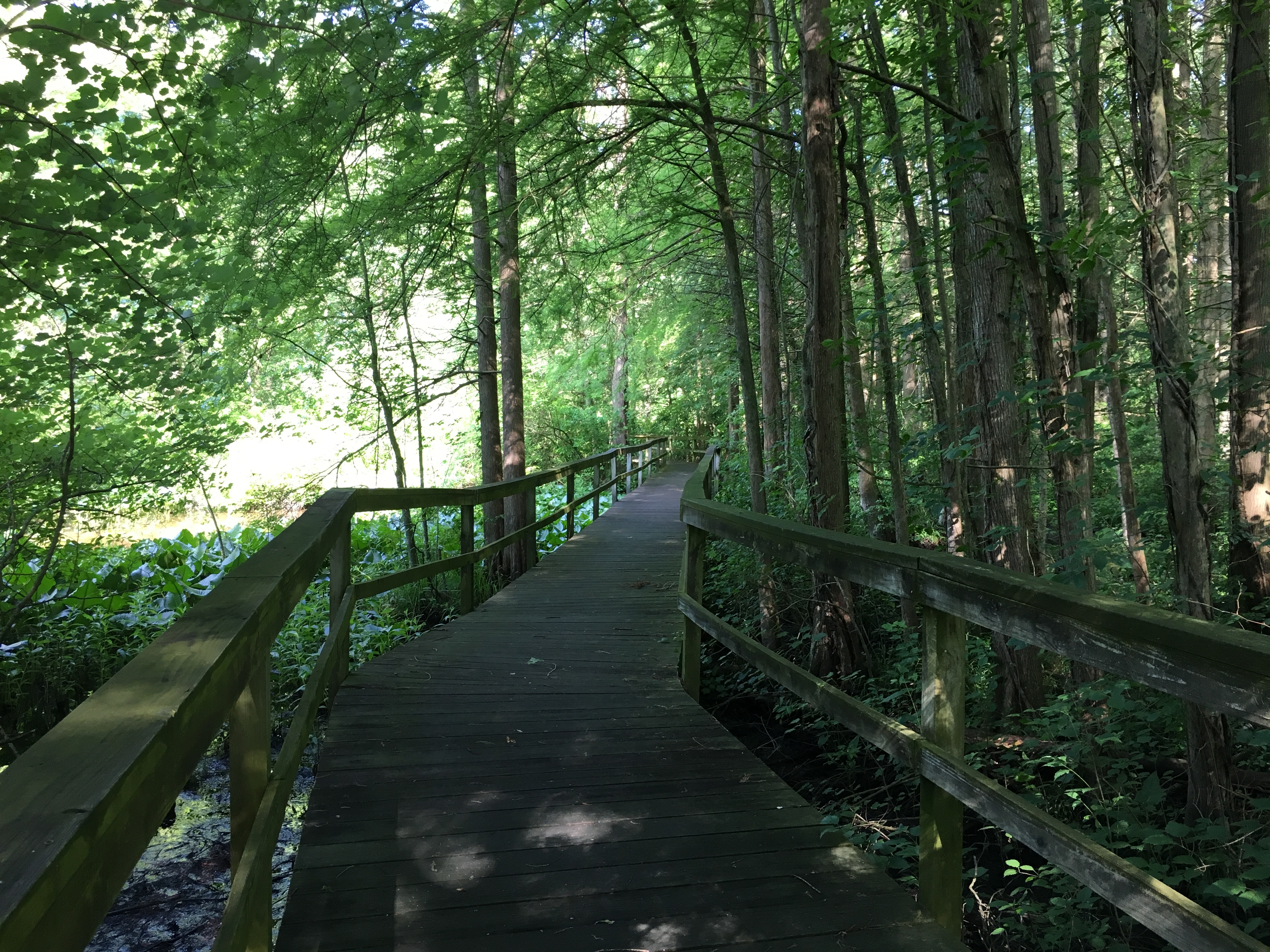 I started out at Adkins Mill Park, and I knew the trail wouldn’t be long, but I still figured it would be fun to visit. There was a grassy path, on which I spotted a turtle, and there was also a boardwalk section along Adkins Pond, which was cool.