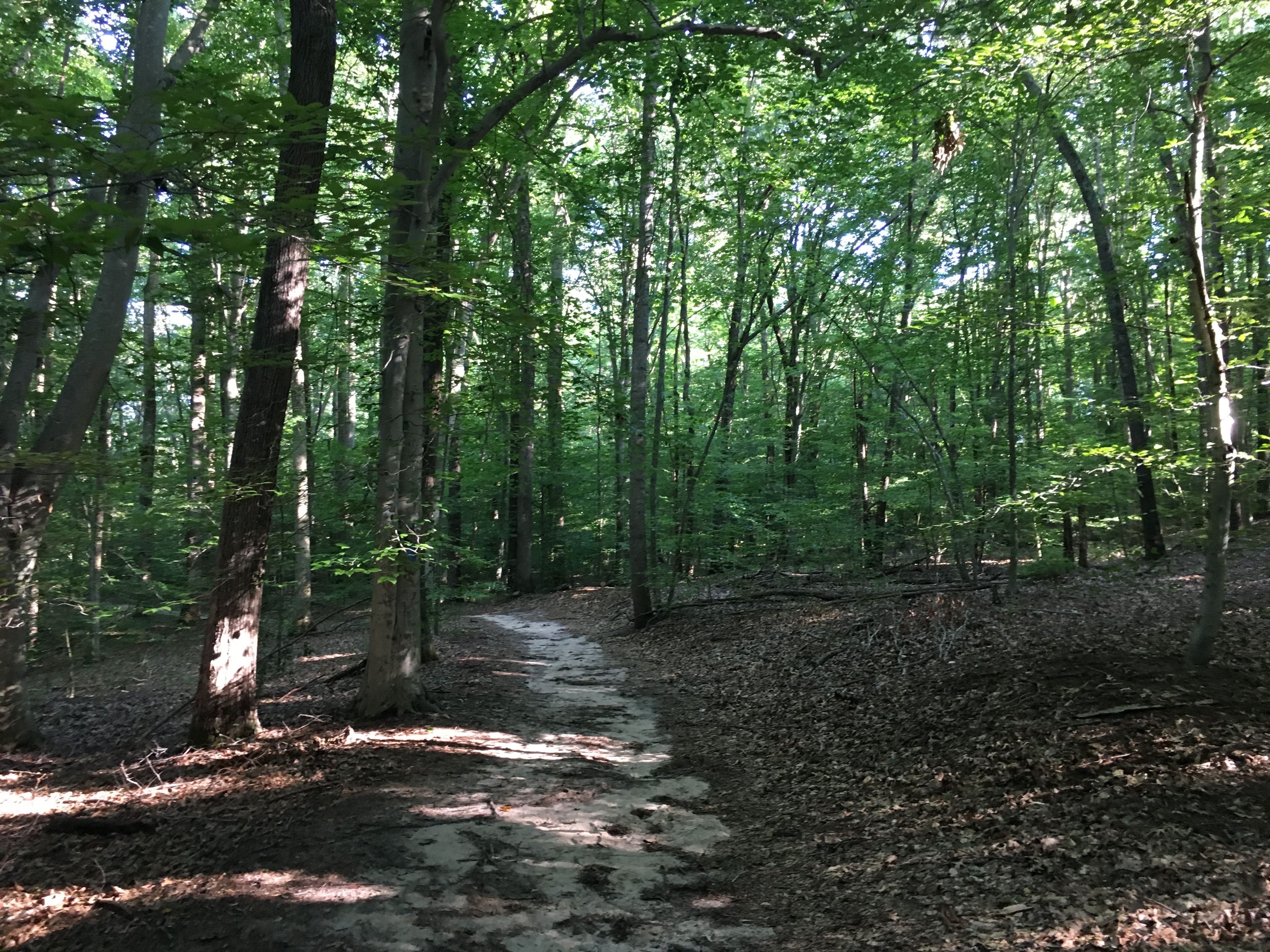 We started the run from a trail entrance on Crouse Mill Road. It was near Lake Tuckahoe, but we were on the other side of the road from the lake, following blue blazes.