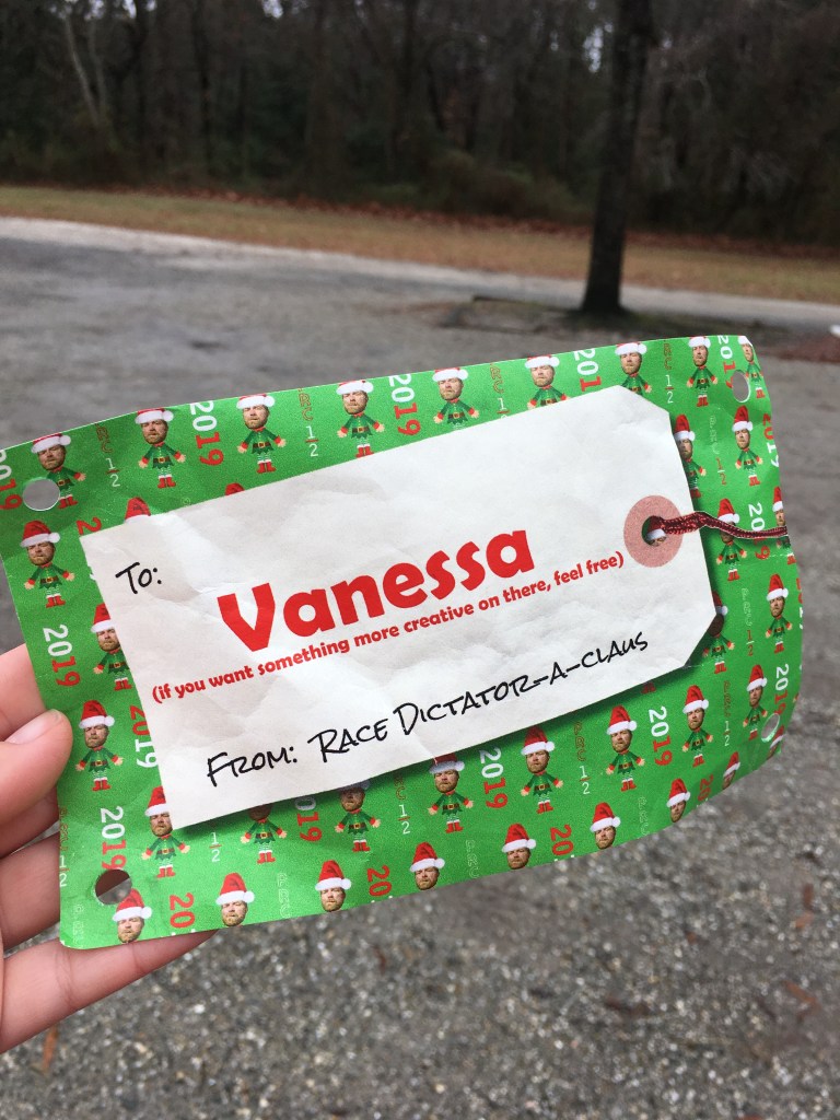 I got to the park a little before the start of the race at 7 a.m. and saw my bib had literally what I had written on the Google form to sign up: “Vanessa” in larger font, but “(If you want something more creative on there, feel free)” in smaller font. It was pretty funny to see mine and others’ bibs.