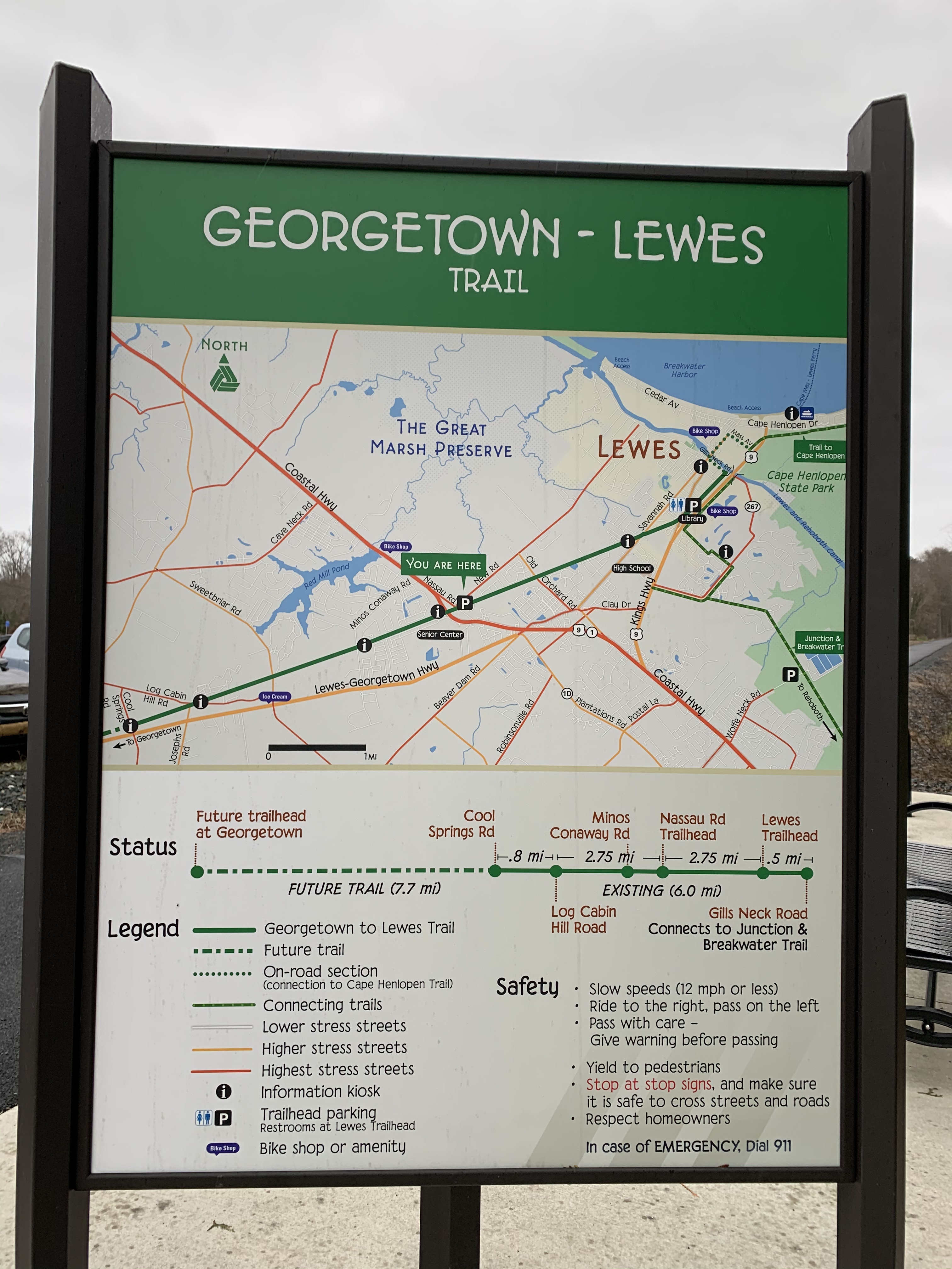 There are no restrooms on the portion of the trail that I ran on this day, but there are restrooms by the Lewes Public Library, which is along the trail.