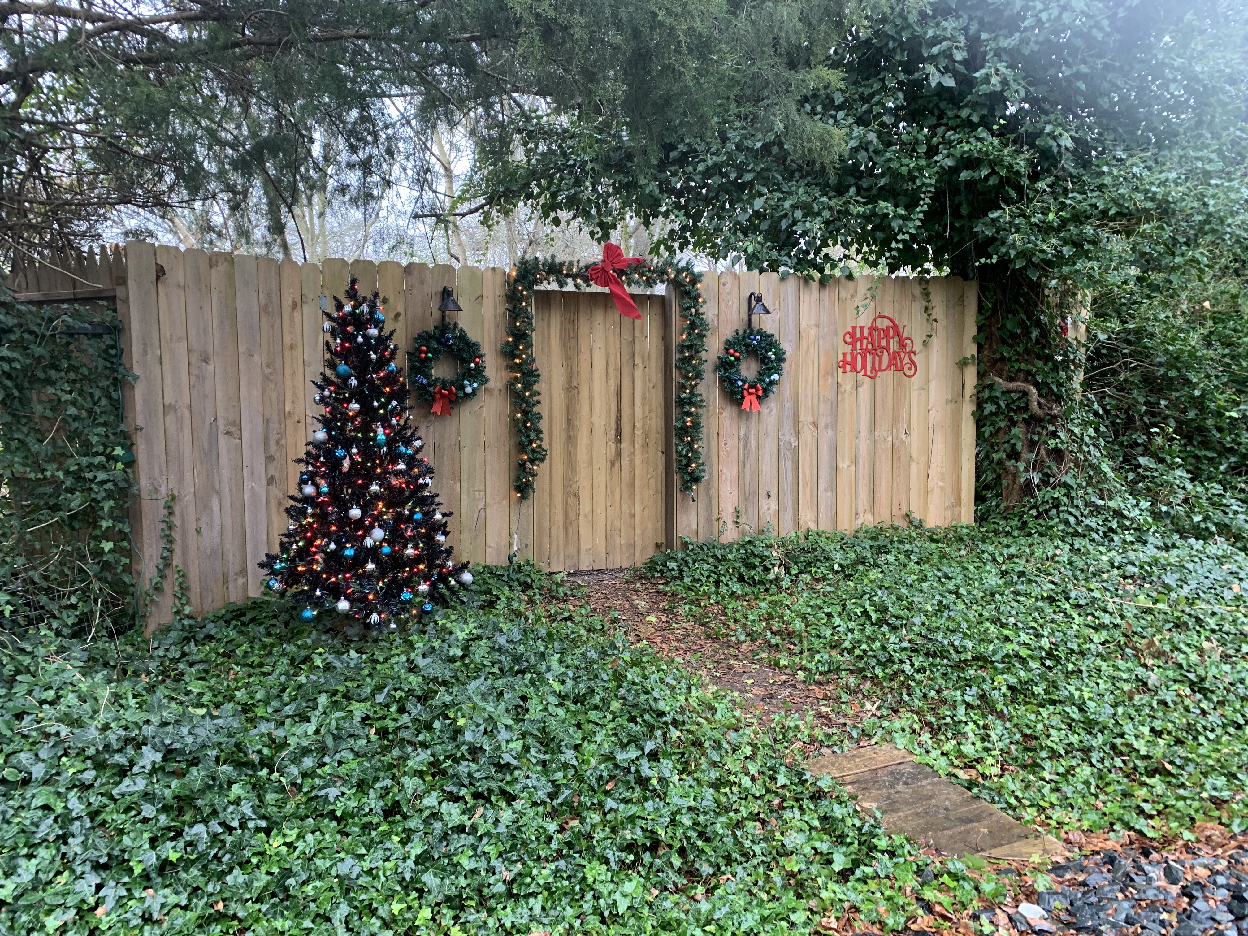 The paved trail is currently 6.8 miles one-way from Lewes, and at the Lewes end, it also connects to the Junction-Breakwater Trail. I headed in the direction of Georgetown, and I soon noticed there were many entrances to the trail from people’s yards, many of which had fun Christmas decorations.