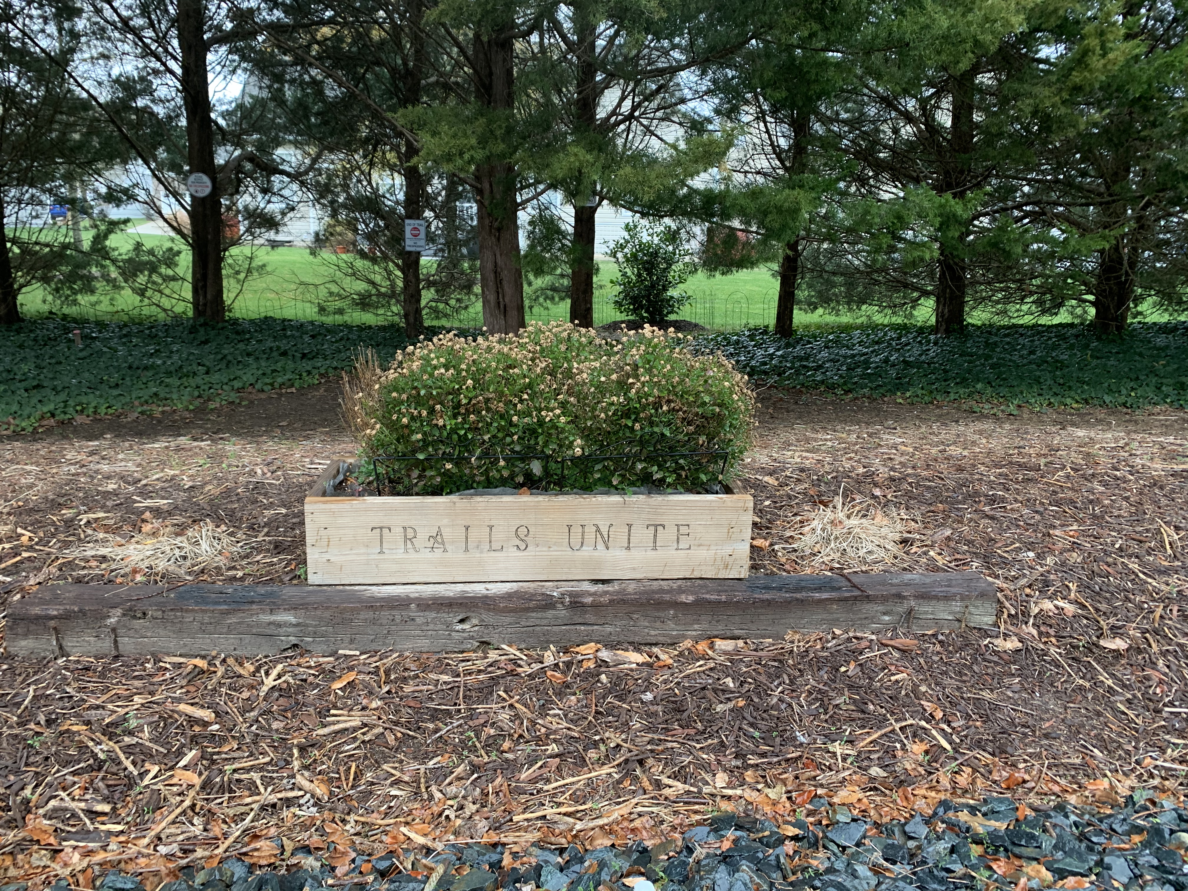 Along the way, I saw a planter box that read “Trails Unite,” a phrase also mentioned in the above article.