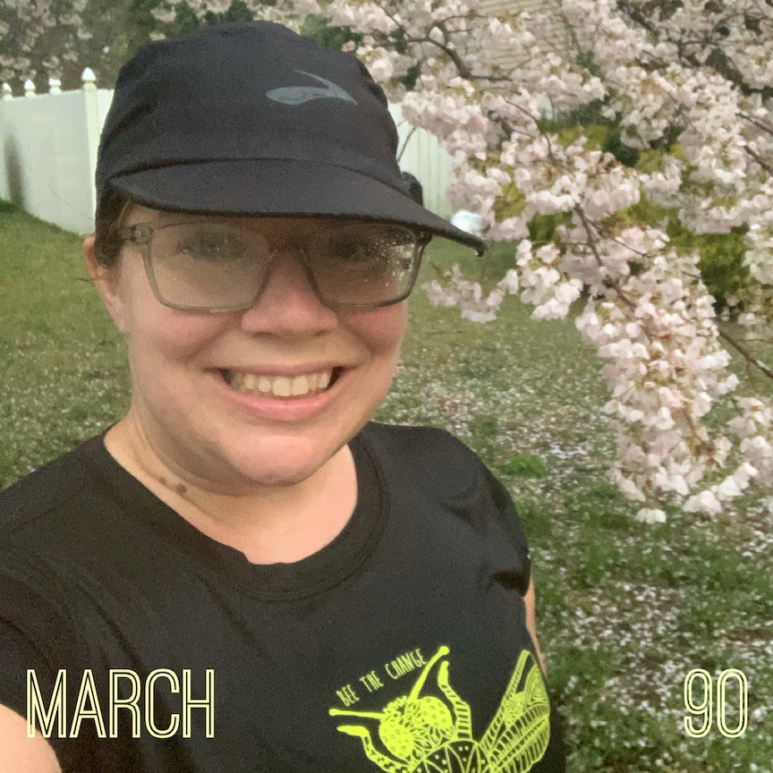 - I ran or walked at least one mile each day. I participated in a Delmarva Moms Run This Town streak and ran or walked at least a mile each day in March. This meant that in addition to my 90 running miles, I walked 12 miles (including two trash pickups with the Eastern Shore Running Club).
