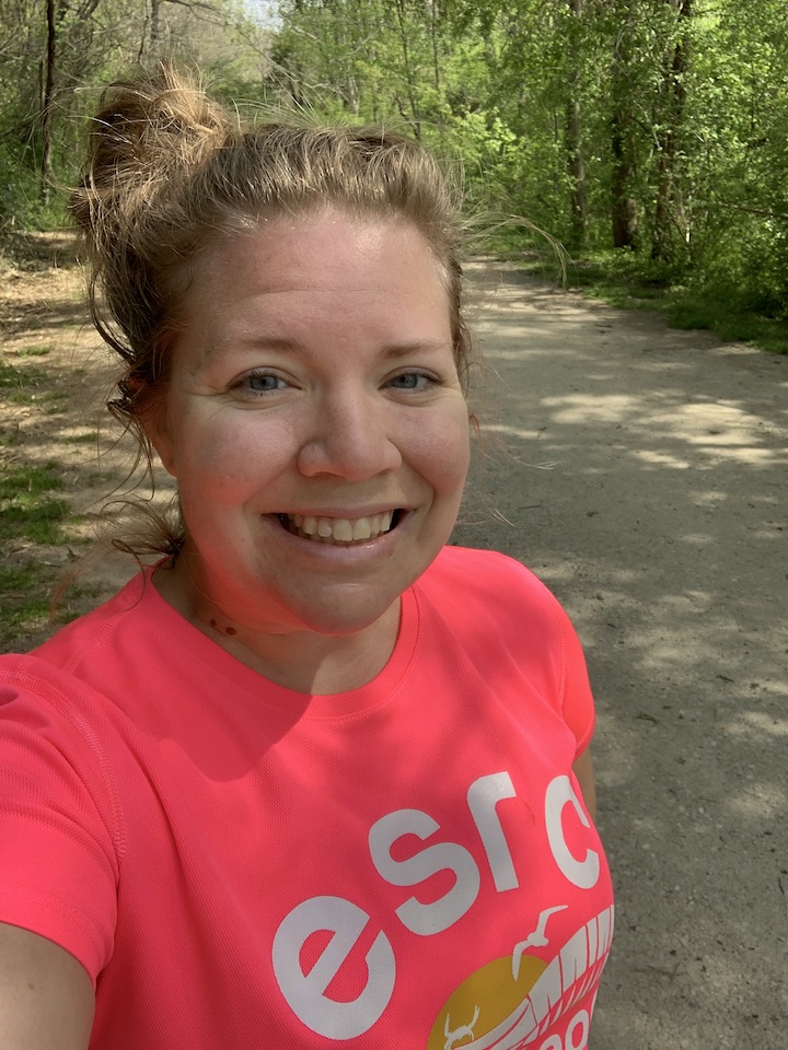 During the second half of my first mile, a runner I’d seen when I started passed me. I tried to pretend like it was an in-person race and keep her in sight. Of course, she didn’t know we were “racing,” and I guess she would have won anyway, as I didn’t catch her. I ran the first mile in 9:21, so it was just under that 9:23 average pace I needed if I wanted to beat last year’s time.