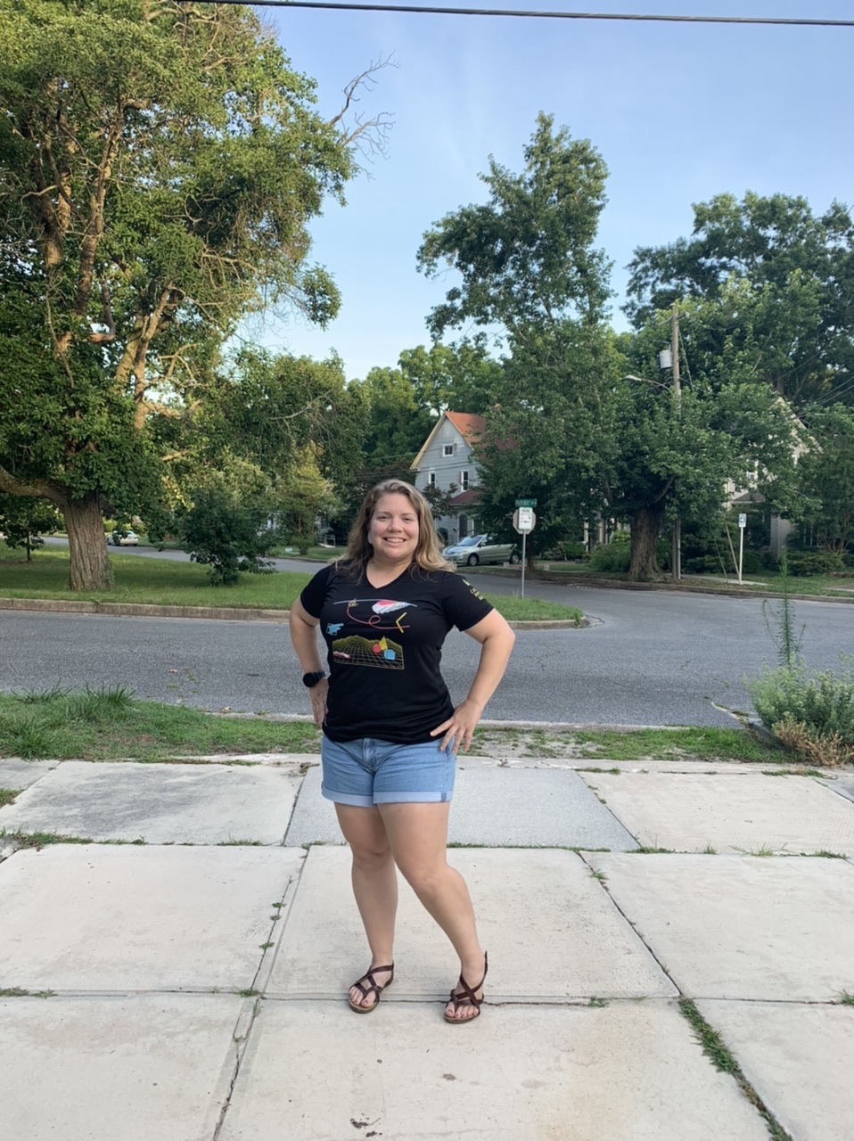 I signed up for this virtual run because the Eastern Shore Running Club, of which I am secretary, is a Road Runners Club of America club, and this race benefited two RRCA programs — RunPro Camp and Roads Scholars grants. I joined an Eastern Shore Running Club team with fellow member Susan, and I wore my ESRC singlet for the run.