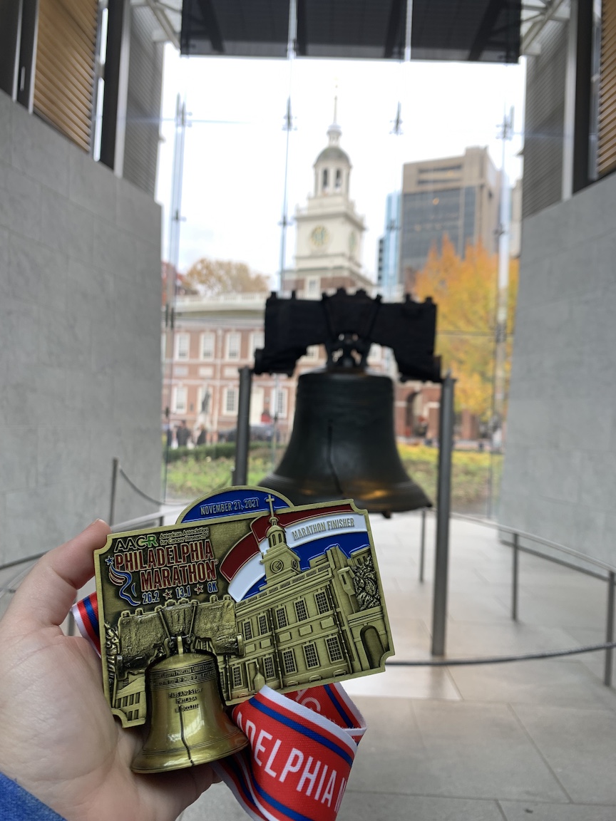 I received my gold finisher medal with a ringing Liberty Bell and picked up some post-race food, finding a spot to sit on the ground near Greg and a couple of his friends. Someone I was sitting by afterward talked to me about how strong my push was at the end, which was nice to hear. After having a banana and a few sips of water and sitting there for a little bit, I got a few photos and made the slow walk back to my Airbnb.