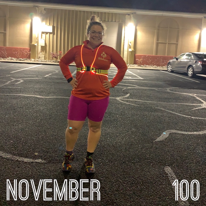 - I participated in 100 Miles in November. This was my fourth year participating in Angie Maske-Berka’s annual 100 Miles in November challenge (learn more about it here). While I ran 150 miles in October, it actually took me till the last day of November to hit 100 miles, because of a taper and rest days after my marathon. There is a supportive community of runners in a Facebook group for the challenge, and there were also themes for each week. For example, I participated in a scavenger hunt and picked up trash on a run.