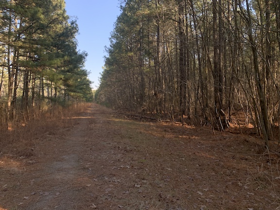 I never saw the horses pass me, but they must have taken a different route at some point, as after the Midshore aid station, I was following horse tracks. In addition to the blue flags I was following, the hoof tracks helped to ensure I was following the course.