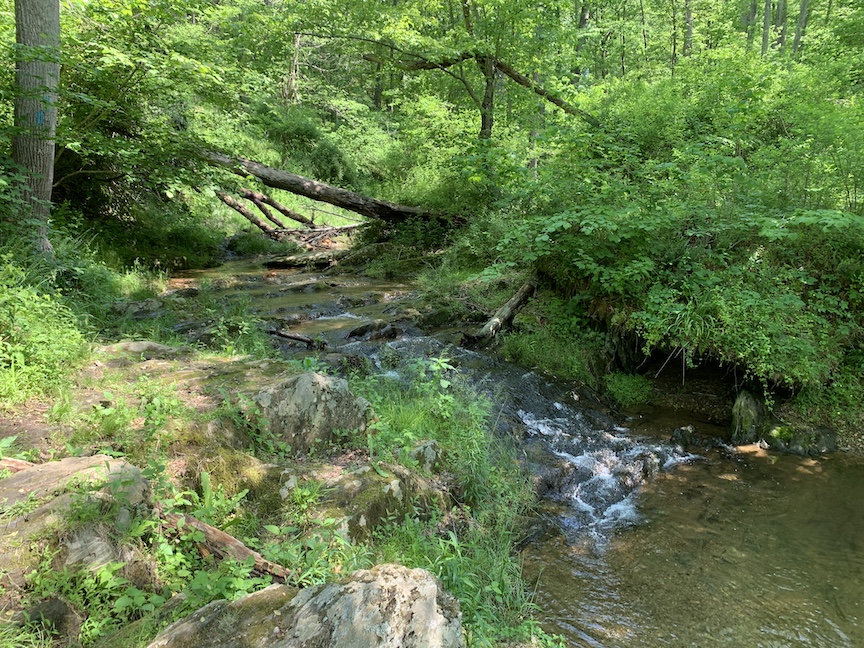 The singletrack trail went alongside a river called the Gunpowder Falls. I took the run at an easy pace, stopping for photos and videos along the way and not pushing myself to run at a certain speed. I’d gotten up early for a long run the day before this May 22 run, so I slept in, and it was hot by the time I got out there.
