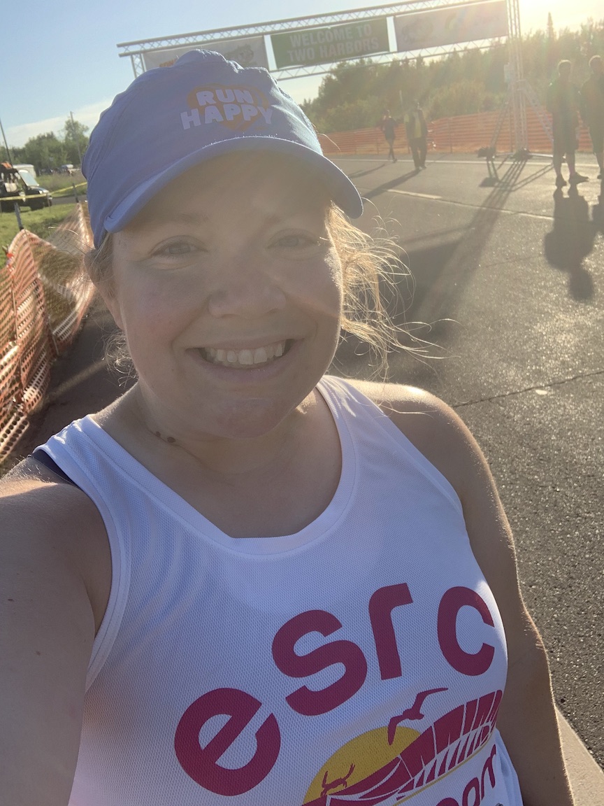 We arrived at the starting line in Two Harbors, Minnesota, with more than an hour before the race start, which was at 7:45 a.m. I’d never seen so many people sitting down on the ground and grass before a race! I sat for a little bit, since so many others were sitting. I also had time to use the bathroom twice, drink a little water and get some photos in Two Harbors.