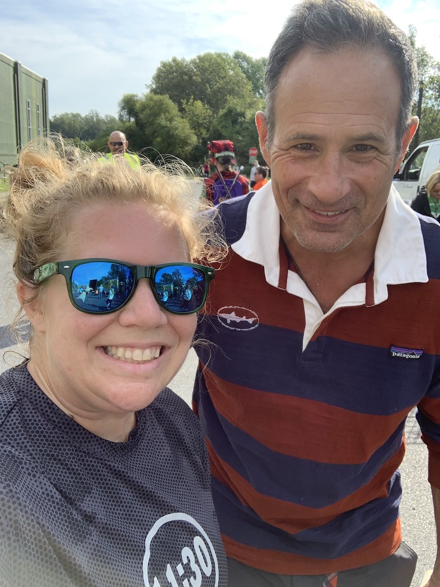 Upon crossing the finish line, Dogfish Head founder Sam Calagione was there giving fist bumps to everyone. I saw him get a selfie with someone, so I asked him for a selfie, too, and he happily obliged.