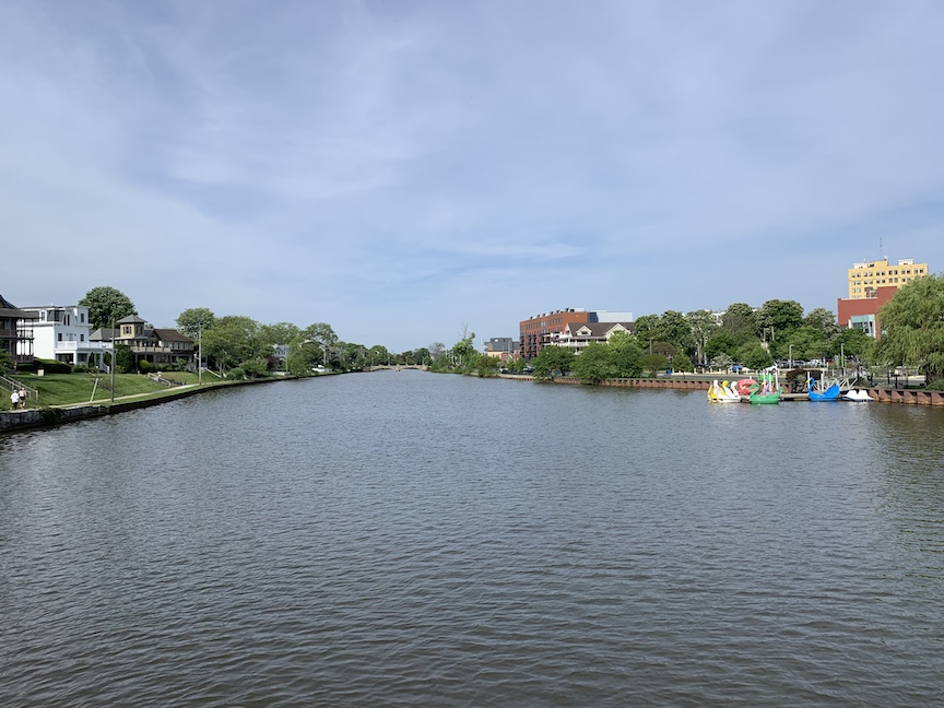 My partner, Mike, and I were in town for a show and stayed at a bed and breakfast in Ocean Grove, which is right across Wesley Lake from Asbury Park. There was a closed building blocking part of the boardwalk from Ocean Grove to Asbury Park, but there were two bridges across the water (or you could cross on the sand).