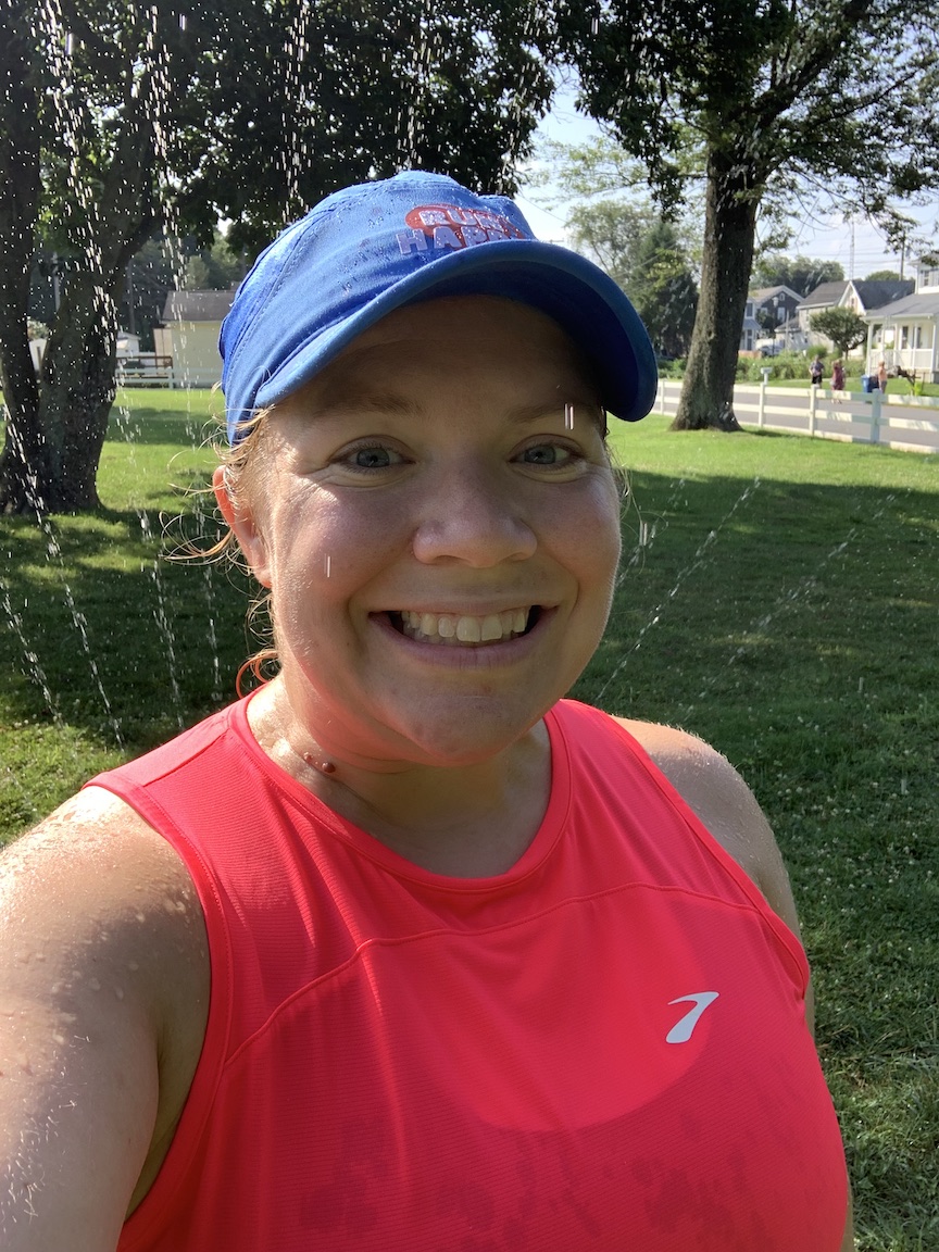 Soon after deciding on the 30-second walk break after each mile, I realized I would need to walk a lot more if I wanted to make my run bearable in the weather. I decided on three-minute run/one-minute walk intervals, which I do often during group and training runs. Since I hadn’t brought my phone with me, I just looked at my watch for the intervals, and they weren’t exact. I walked at all of the water stops, so sometimes the timing would change depending on those.