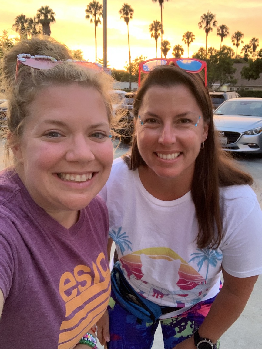 That evening was the Speed Party at the hotel. People came up with all kinds of creative speed-related outfits. I got a shirt from Amazon from the 1984 Olympics, which were held in Los Angeles and featured the first women’s Olympic marathon, and I also wore my new Hyperions. There were race car drivers, pit crew members, inflatable dinosaurs and more.