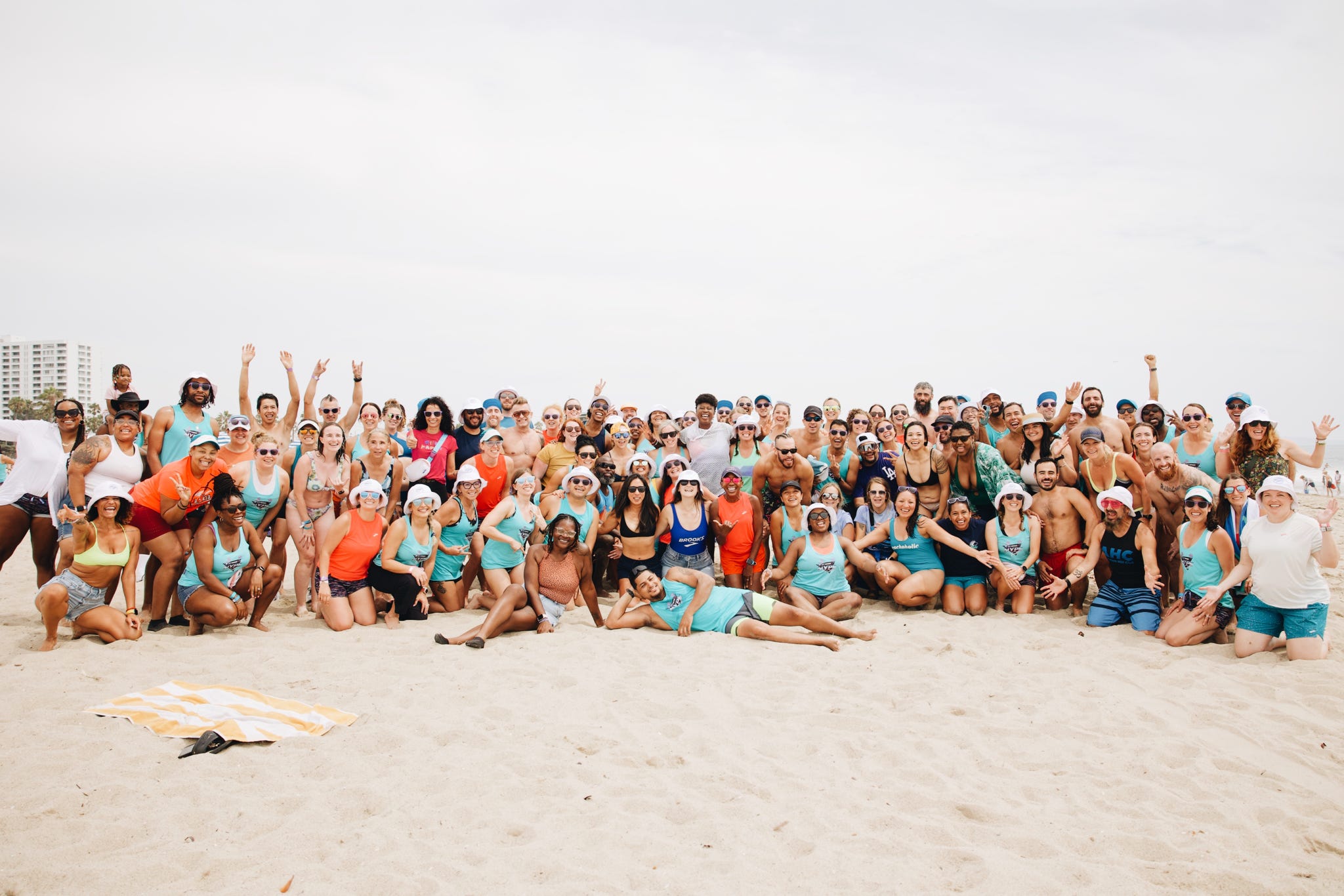 There are several of us on the Brooks Run Happy Team who are also BibRave Pros, so we met up for a photo in our BibRave gear. After that, it was time to head to the beach for a beach party, which was also an opportunity to get some social media content with groups. Really, many of us were taking videos or photos or asking people to do things for reels the whole time, and since we all make content as part of being on the Run Happy Team, it seemed like anyone was up for any reel idea.