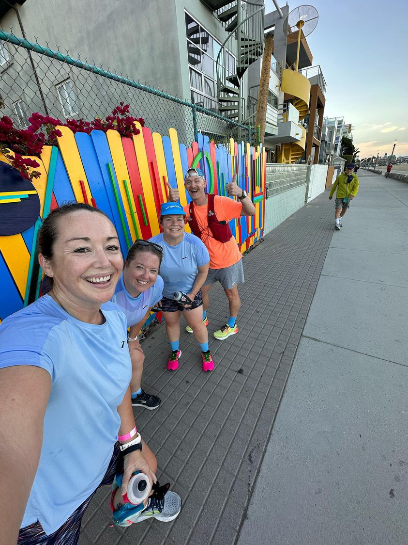The group run to Champs was about 3.5 miles, including an out-and-back along the Ocean Front Walk, during which we got to see other runners in our 170-ish-person group. We also saw lots of groups of the LA Leggers, a local running club.