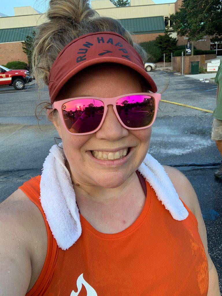 I wore my now-go-to race shoes, the Brooks Hyperion Max (which were gifted to me as a member of the Run Happy Team), and I also wore my Pen & Paces Yell My Name Race Bib Topper Kit that I got for free through BibRave. I didn’t have people cheering for me by name at this race either after also wearing it at the Mike Sterling 10K, so I’m thinking I will have to wear the bib topper to a larger race (it’s held up well after two races).