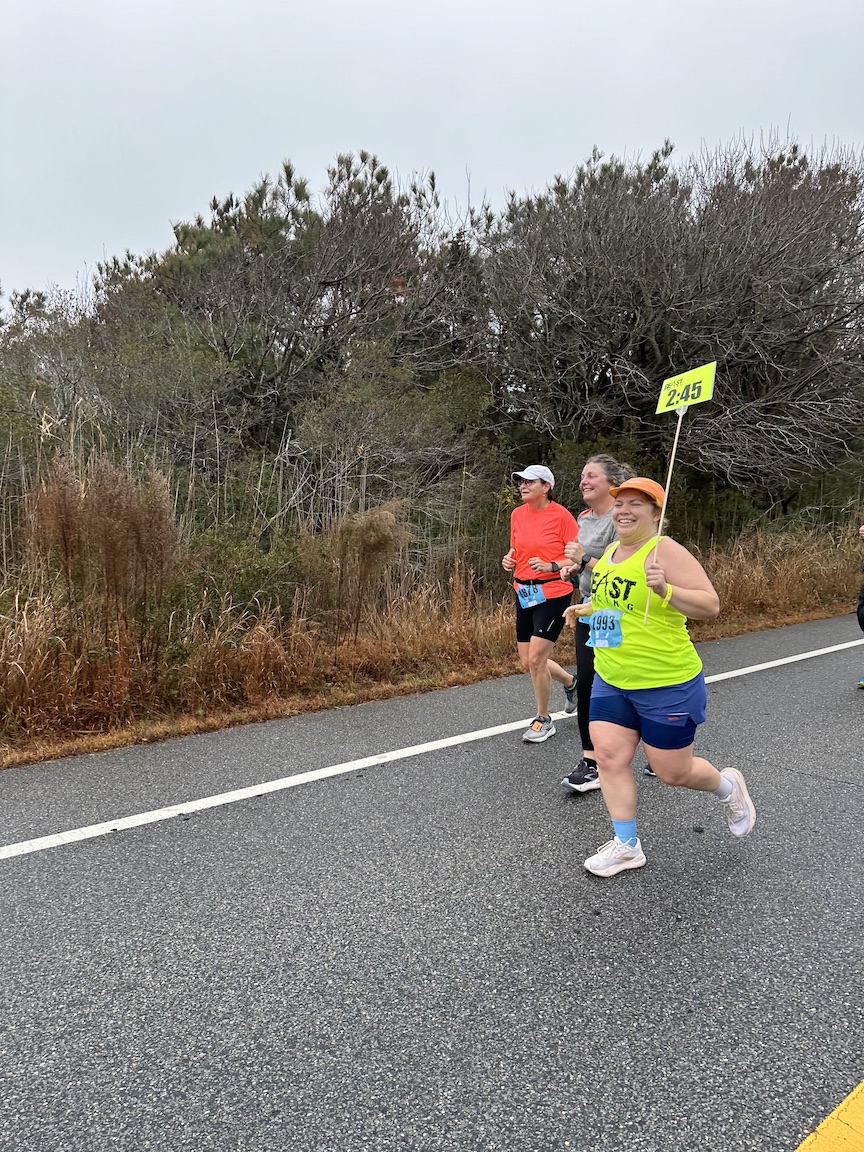 I’ve fallen into the 2:45 groove and can stay consistent at this pace. This was the third consecutive year I’ve paced the 2:45 finish time at the Rehoboth Seashore Half Marathon, and I also paced 2:45 at the Coastal Delaware Half Marathon in April in both 2022 and 2023. The races have different organizers, but they are both paced by a Beast Pacing team. I have been pacing the Rehoboth Seashore Half since 2018 (and I ran it before that). I used to pace 2:30, but now, that’s closer to my race time.