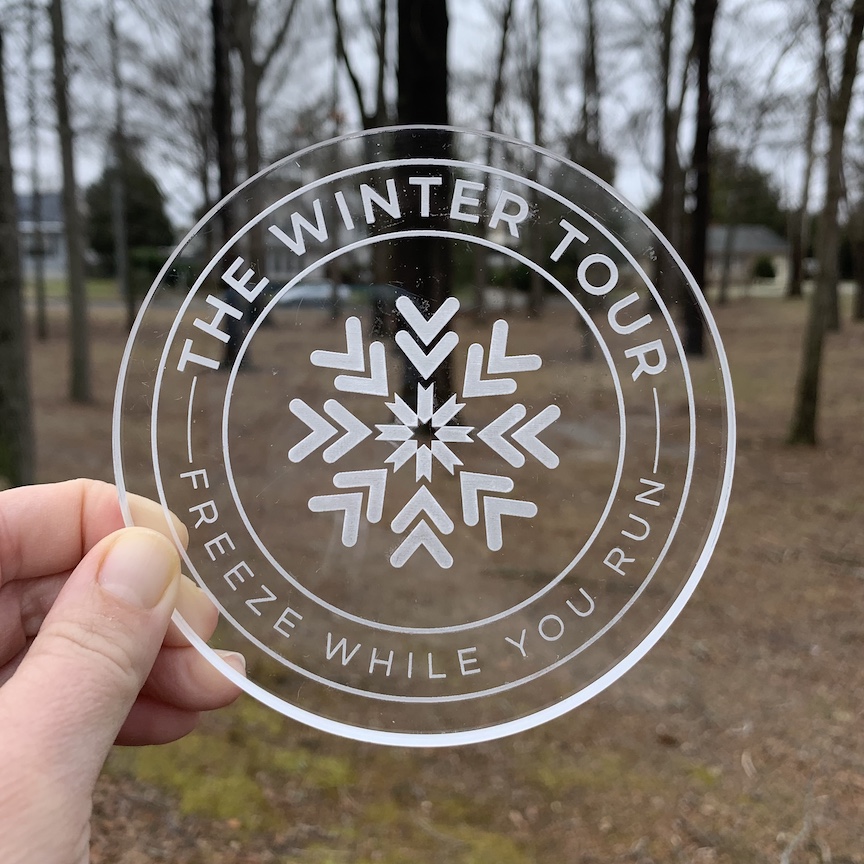 The finisher item was a snowflake, and participants also received gloves. Runners and walkers also got a bib from DiCarlo Digital Copy Center to track completion of the legs. It was a fun experience and I hope it returns in the winter!