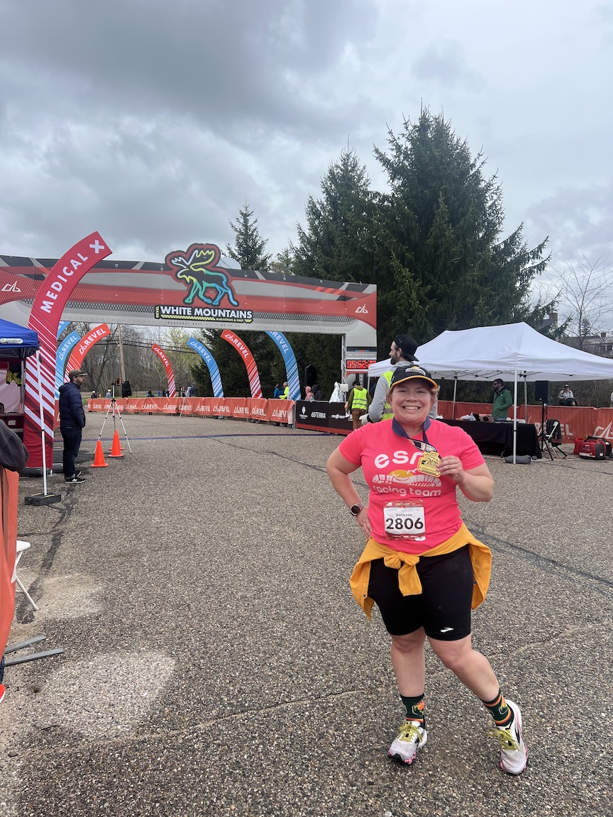 My race weekend started the Friday before the race, May 3, when I made the drive from Salisbury, Maryland, to North Conway, New Hampshire. I left early, and with the stops I made, it took about 12 hours. I went straight to meet up with my friend Jess for dinner, and then I went to my Airbnb, located on a mountain and only a few miles after a “Bear Crossing” sign (I didn’t see any bears). My Airbnb host, Peg (who regularly sees bears and other wildlife), would be running the half marathon at the race, and we talked for a while about running.
