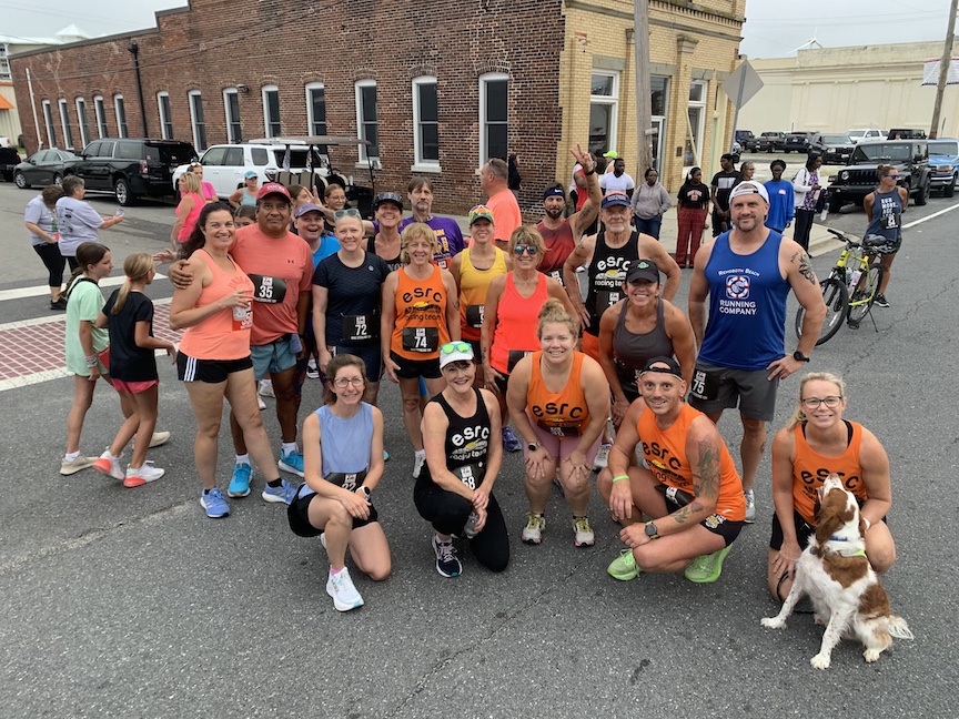 After a brief warm-up and some group Eastern Shore Running Club photos, the race began at 7:30 a.m. My first mile was the only one that was on-track for a sub-1:00 finish — 9:37 — and I knew I wouldn’t be able to keep that up. I didn’t feel terrible, but I also didn’t think I would be able to hold on to that pace.
