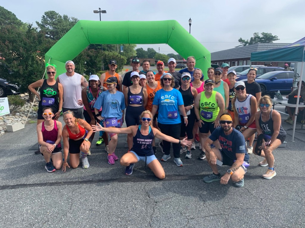 We had a large ESRC showing at the race, which was June 28, and we got our group photo before heading off. Of course, it had been cloudier earlier in the day and the sun seemed to come out right around the time the race started. In addition to the 5K, there was also a one mile fun walk option.