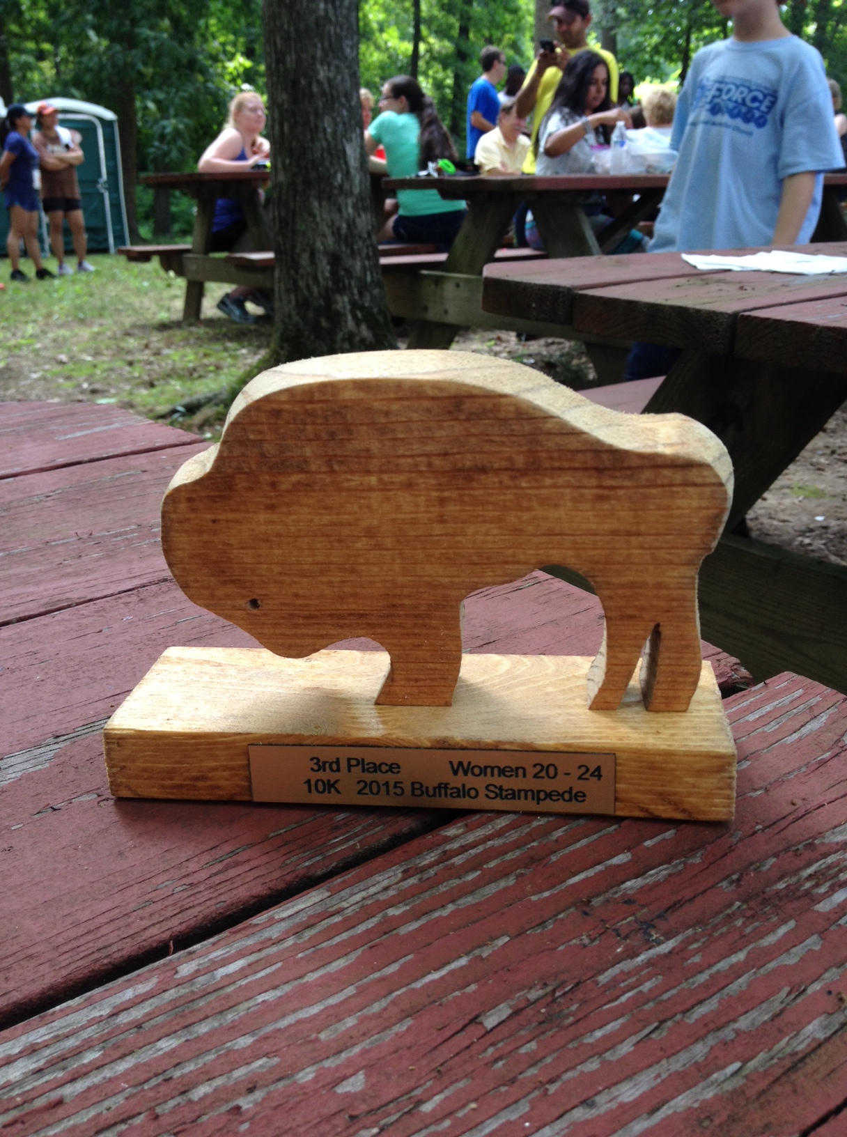 Here’s my award from the Great Wyoming Buffalo Stampede 10K, for third place in my age group. (Vanessa Junkin photo)2015